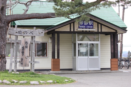 【駅名由来】アイヌ語の「ヌモッペ」、すなわち「ヌム・オッ・ペッ」(クルミの多くある川)からでたもので、これがなまって「ヌノッペ」といい「布部」となったといいます