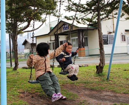鉄棒とブランコが、2基あるだけの小さな公園ですが、数少ない小さな子供たちの遊び場になっています